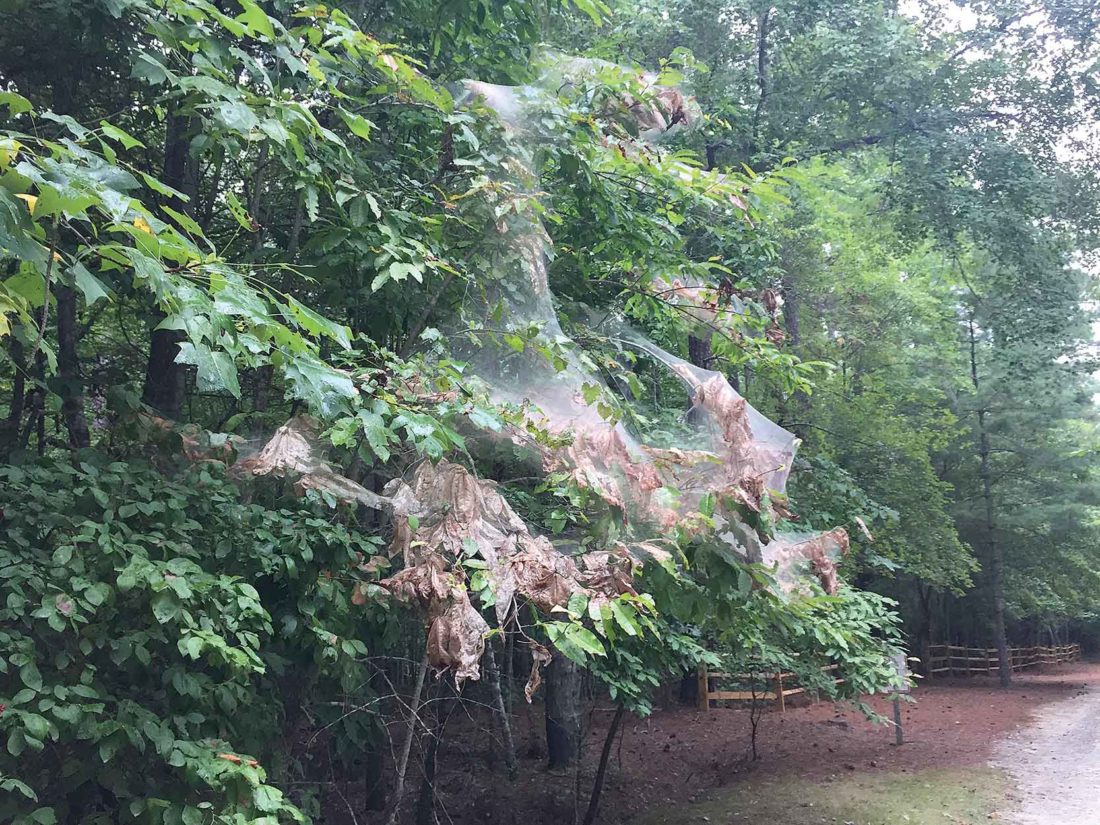 Fall web worms and their messy web nest are an eye sore. The easiest way to control them is to wait until late evening when the caterpillars have returned to the nest. Photo from K. Oten, NCFS. Submitted Photo