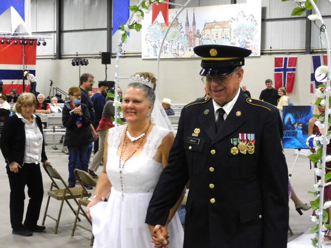 Norsk Hostfest closed on a personal milestone when Joe Junglas and Cindy Semmens were married Saturday, Sept. 27, inside the entrance of Oslo Hall.