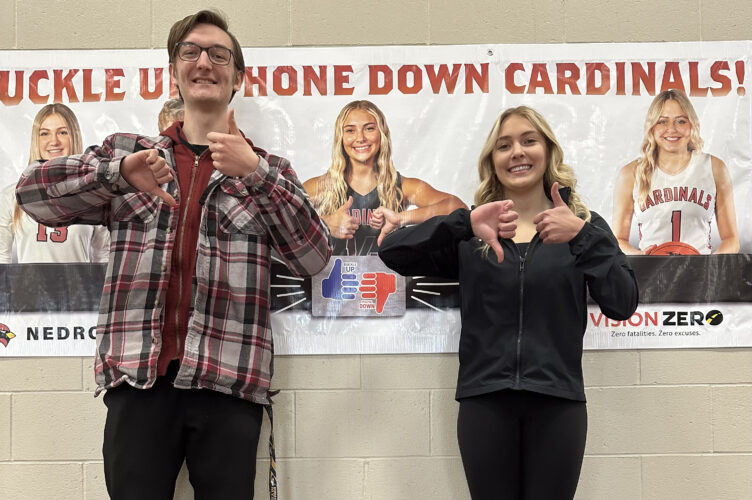 Junior Maecey McKibbin and senior Bryson Vannett are co-leaders of Nedrose’s Vision Zero school program, in which they educate their peers and community on safe driving ...