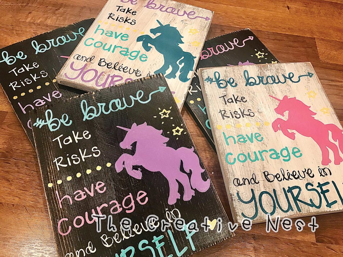 I started The Creative Nest in 2012 by chance by painting on scrap wood left over from rebuilding our flooded home. Thought it would be something I would do as a fun hobby… but thanks to lots of support from friends and family, I have grown to 27 followers on Facebook. The Creative Nest is now a full time home-based business, with much credit due to help from my husband Gus. I don’t know too many husbands that would allow both of their garages to become packed with reclaimed wood and my “junk” treasures… much less have their kitchen table be a “studio” for five years and counting!