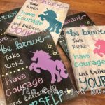Freehand brush painted artwork and signing. Most on hand reclaimed Wood from donated barns and outbuildings around our local area.