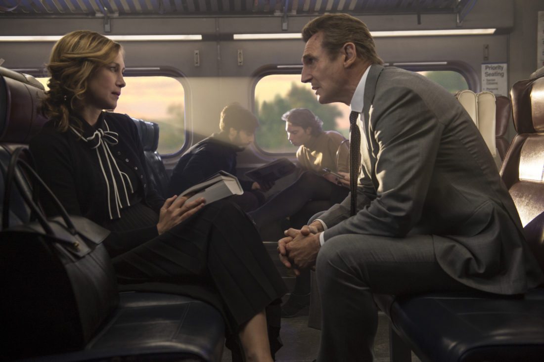 But one day is a particularly bad one. McCauley is fired five years short of retirement. With his savings depleted by the 2008 financial crisis and college tuition coming soon for his high-school graduate son, McCauley’s panic is palpable. He stops for a drink with his old police partner (Patrick Wilson) before boarding the train home. There, he’s greeted by a Hitchcockian stranger on the train (Vera Farmiga) who explains that McCauley will make $100,000 on his ride home if he can only find the person on the train “who doesn’t belong.”