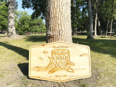Submitted Photo The Logger Fest logo pictured was designed by Madeline Knutson, multi-media coordinator, and laser-engraved by POEM, to hang under Giant Archway in Oak Park as a symbol of everyone who worked to bring this event to life.