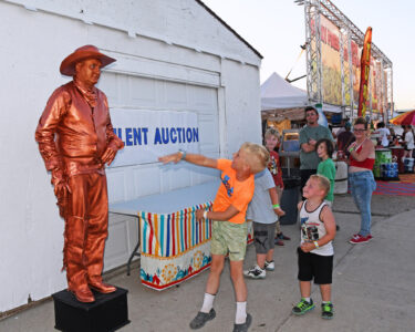 - Chris Yerlig of Massachusetts stands as a human statue called the “Copper Cowboy” at the Upper Missouri Valley Fair in this photo by Roger Riveland. Kids gathered round after seeing it was a human in an attempt to make Yerlig move. Yerlig surprised everyone with how long he could remain motionless and not blink. The fair has existed for more than 100 years in Williston and is the official Williams County fair.