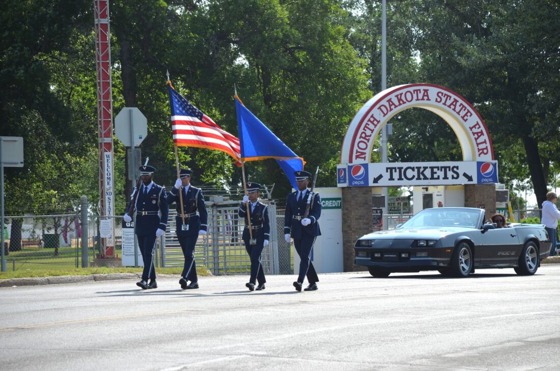 Eloise Ogden/MDN A Minot Police Department vehicle followed by the Minot Air Force Base Honor Guard, shown in this photo, led the first Minot Shrine Club’s Fourth of July parade on Tuesday morning. The parade on Burdick Expressway started at the North Dakota State Fairgrounds and ended near the Coca-Cola Bottling Co. It included Shriners, veterans’ organizations, local fire departments and others.
