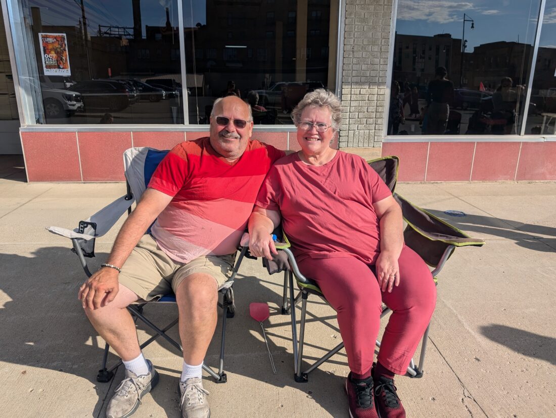 - John and Carol Hepper sit and watch the Minot State University Homecoming Parade on Saturday. The Heppers have been attending the parade for 40-some years.