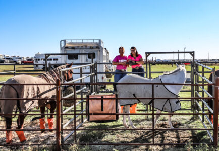 - Submitted Photo Bailey DeVette and Natalie Steiner, of Williston, with their horses Frankie and Keystone, were at the Race to Remember cancer benefit held at the Ree Ranch at White Shield. DeVette and Steiner said they have a passion for horses and love camping out at races with their dogs Dakota and Addie. Photo by Karen LoneFight.