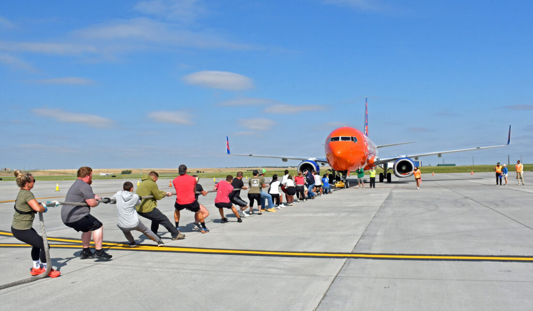 WILLISTON – Six 20-person teams tested their strength in the inaugural Make-A-Wish North Dakota Plane Pull held at XWA Williston Basin International Airport in Williston Saturday, Aug. 16.