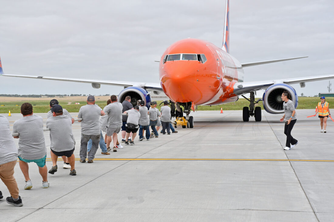 The six teams – CrossFit Vokse, Liberty Energy/Wolla Trucking, Overland Aviation, GO Wireline LLC, Magnum Services and XWA-Williston Basin International Airport – competed to see who could pull a Sun Country Airlines passenger jet for 100 feet the fastest.