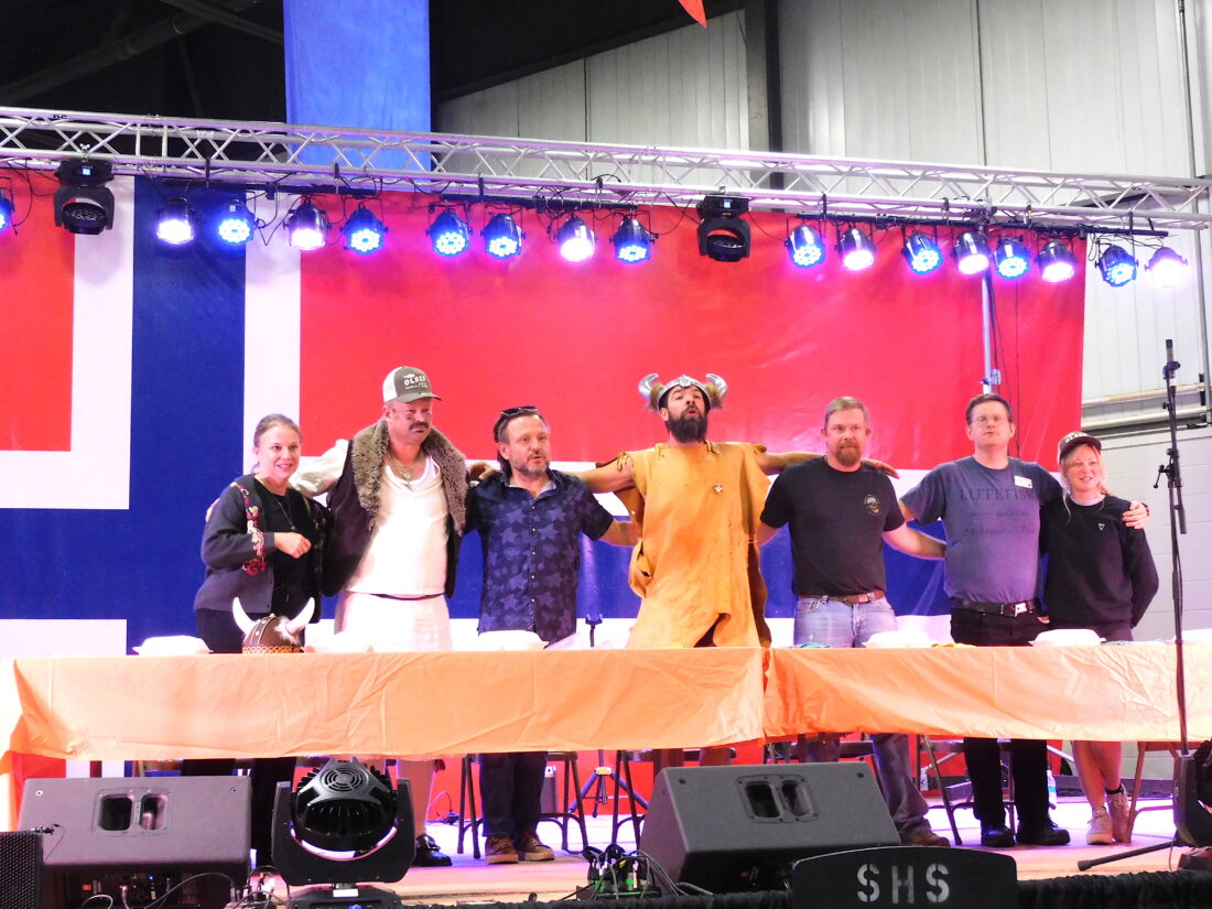 Frode Tilden of Fargo claimed first place, with Heather Donelan of St. Paul, Minn., finishing close behind in second. Both walked away with prizes from Olsen Fish Company, longtime sponsor of the contest, along with the bragging rights that come from taming lutefisk under pressure.