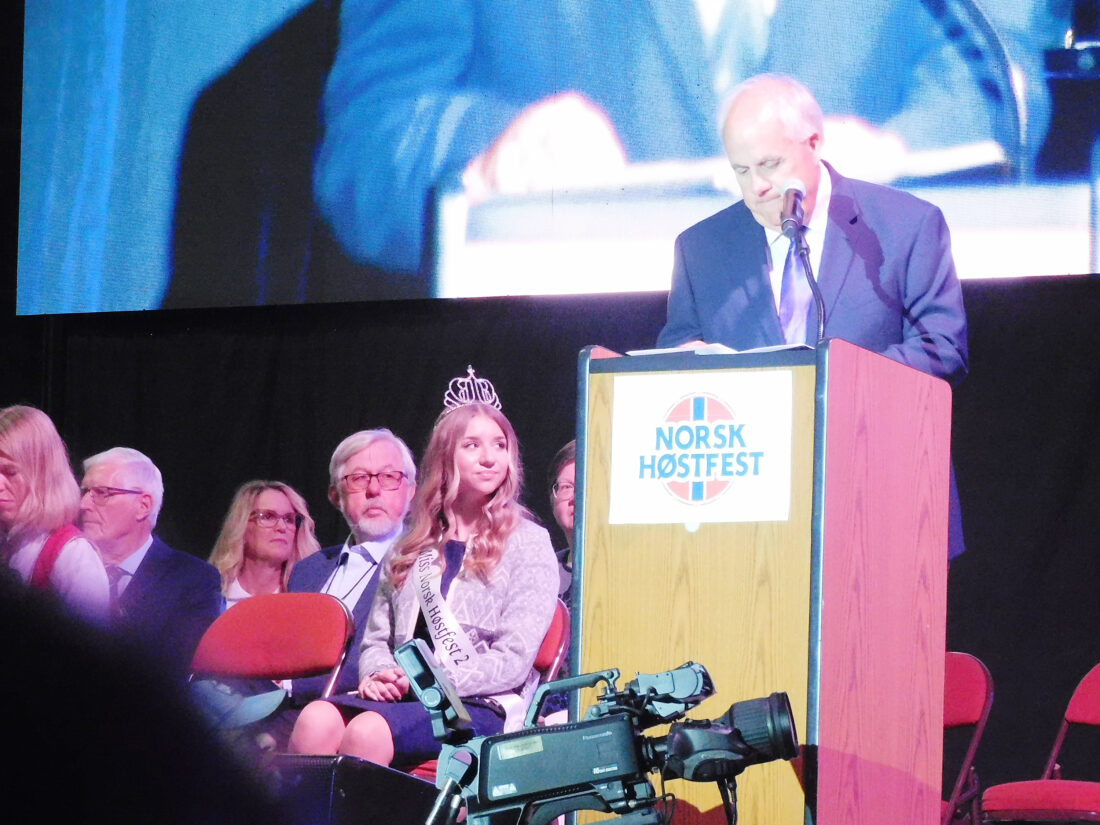 - Wendy Harper/MDN Jim Olson starts the Norsk Hostfest Opening Ceremony with opening remarks in the Great Hall on Wednesday, Sept. 24.