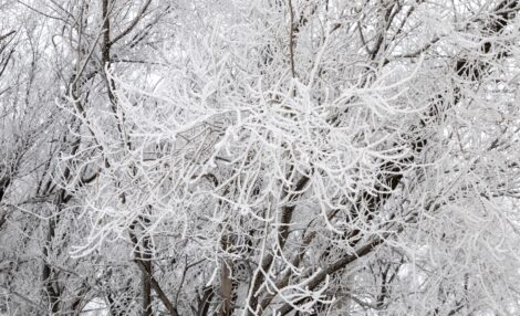- Submitted Photo Trees hang heavy with frost Thursday, March 5, in this photo by Karen LoneFight.
