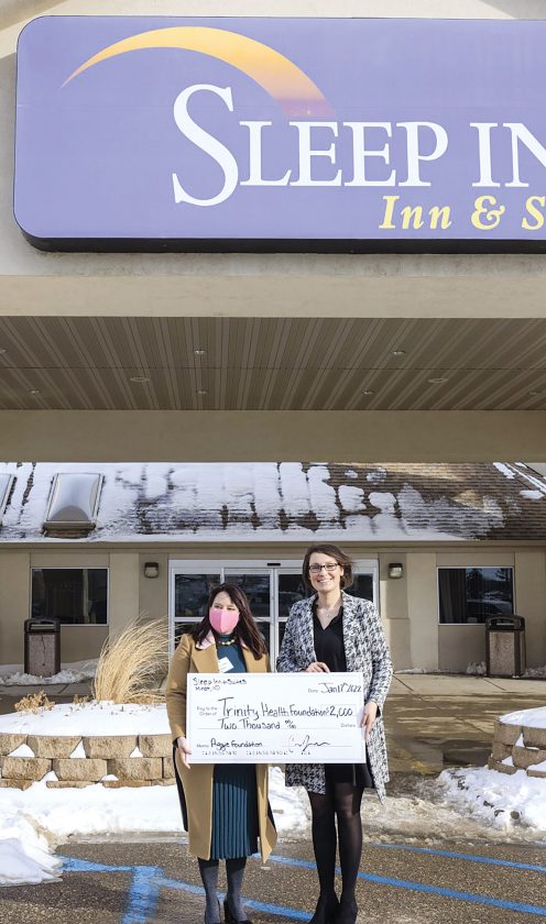 Trinity Health Foundation recently was presented a $2,000 donation for the Nursing Scholarship Program from Minot’s Sleep Inn & Suites.
