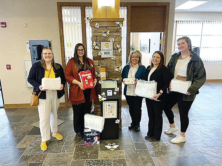 Submitted Photo Shown in this diaper drive photo are Alyson Heisler (Project BEE), Kelsey Scharmer, Diane Smith, Brianna Weeks and Morgan Kroeger.