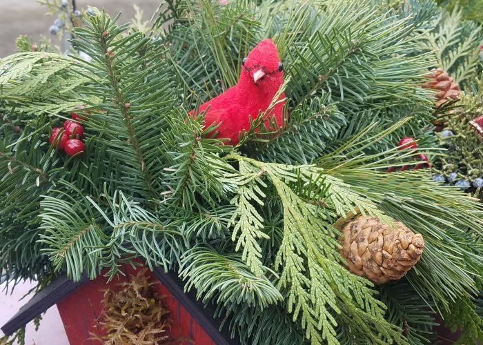Take a break from the holiday rush for a bit of gardening relief. Grab a pruner and basket then wander through your landscape gathering a few evergreen branches, berry-laden stems and cones to create a holiday centerpiece.