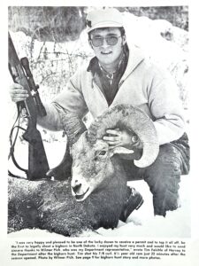 State lawmakers passed Senate Bill 2210 a half-century ago, which opened the door for the first modern-day bighorn sheep hunting season in North Dakota. The 12 once-in-a-lifetime licenses were issued by lottery and those fortunate to draw were required to be accompanied by a game warden or other Game and Fish Department personnel to make certain each hunter harvested a legal-sized ram.