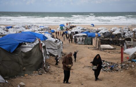 KHAN YOUNIS, Gaza Strip (AP) — Winter rain lashed the Gaza Strip over the weekend, flooding camps with ankle-deep puddles as Palestinians displaced by two years of war attempted to stay dry in tents frayed by months of use.