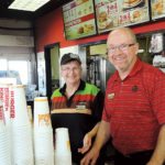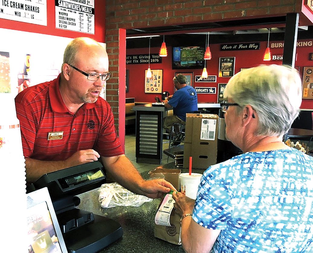 In addition to an increasing and changing menu, several other notable changes have happened during Olson’s 40-plus years at Burger King. Several remodeling projects have taken place at the South Broadway location. Inside seating remains but, with today’s busy lifestyles, the drive-thru window accounts for up to 70 percent of the business.