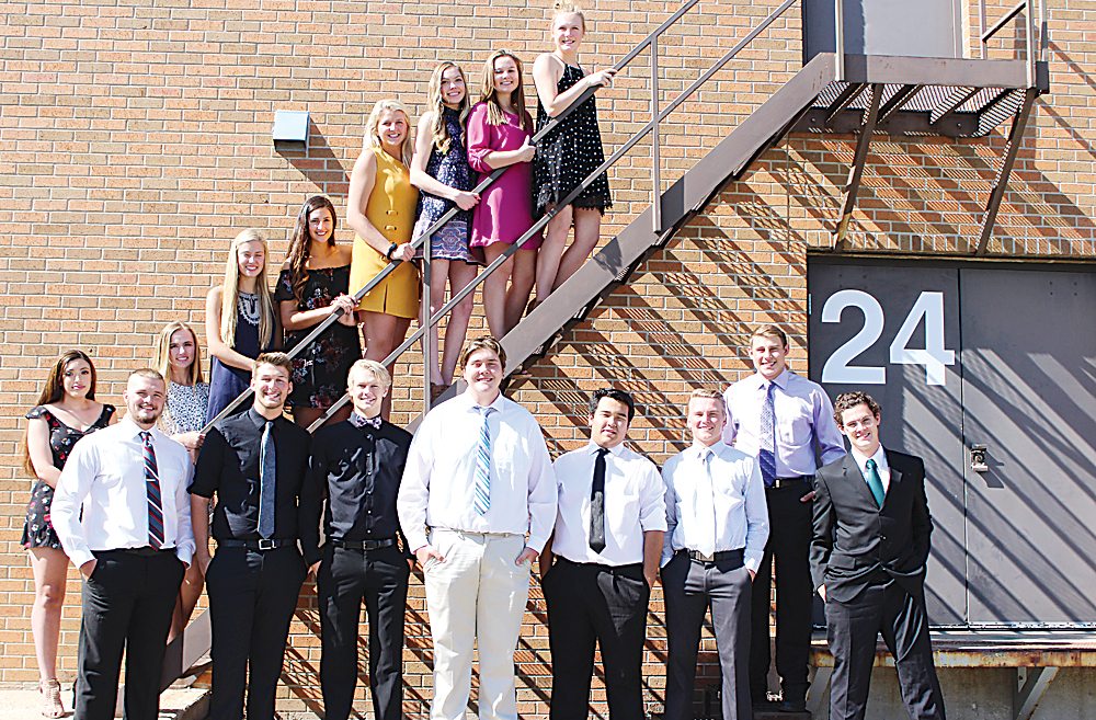 Submitted Photo Hayden Hartley was named the homecoming king and Alyssa Ellet was named the homecoming queen this week at Minot High School-Magic City Campus. Pictured are the homecoming court. Front row, from left to right, are Layne Rouse, Hayden Hartley, Chandler Albertson, Devyn Bollinger, Steven Le, Creighton Rudolph, Patrick Richardson and Dallas Clark. Second row, from left to right, are Alyssa Ellet, Marley Foltz, Brooke Nelson, Maggie Sem, Brenna Tschetter, Elise Klein, Josie Lenertz and Paige Moran.