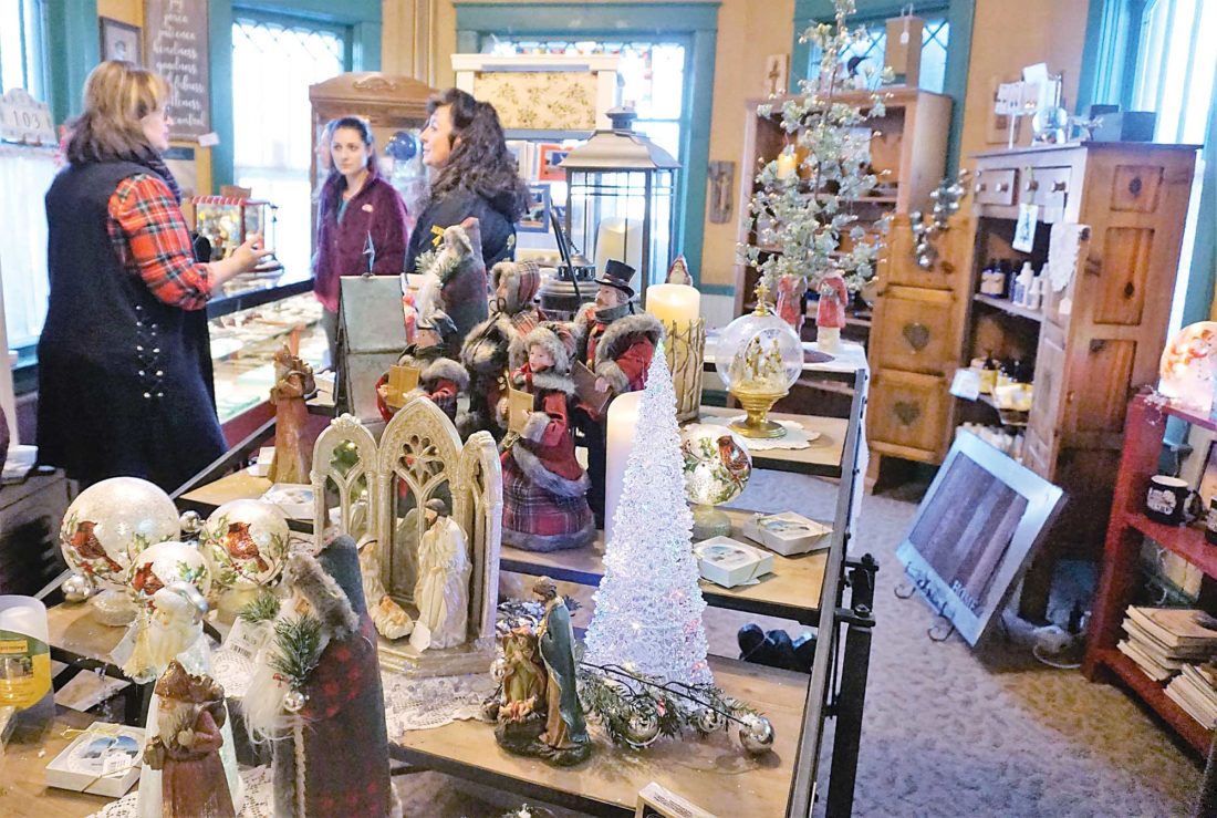 Jill Schramm/MDN Home Sweet Home co-owner Linda Johnson, left, visits with customers in the store Monday.