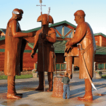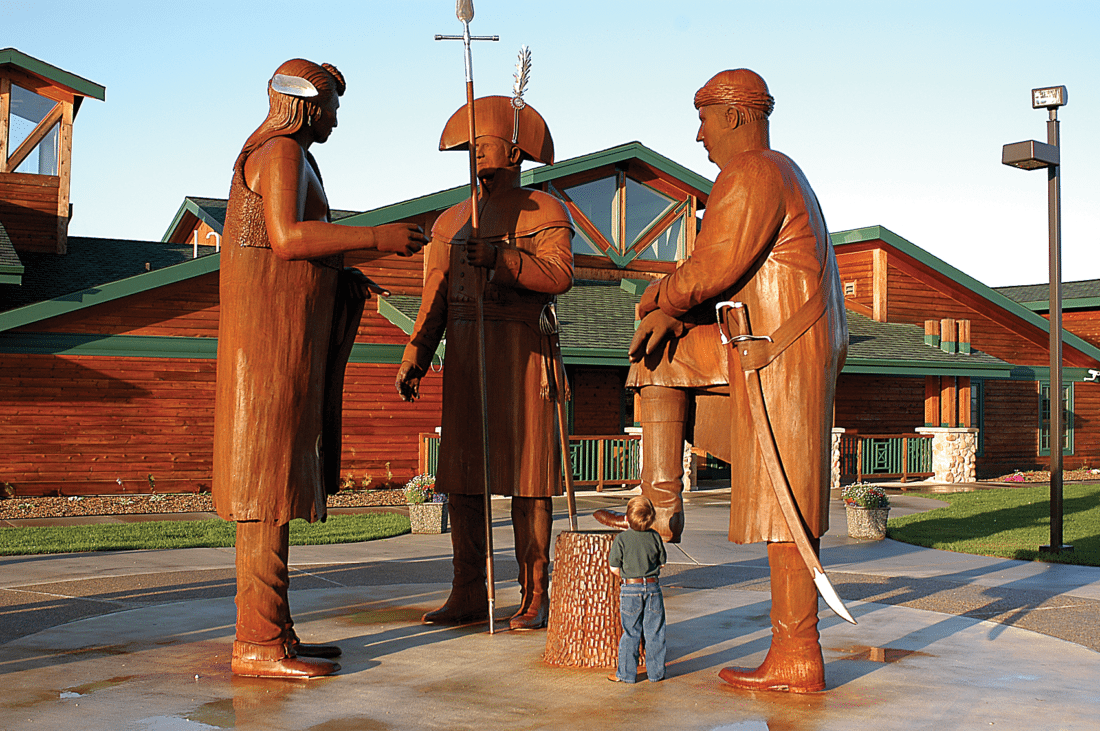 - Submitted Photo Statues are pictured in front of the Lewis and Clark Interpretive Center in Washburn.
