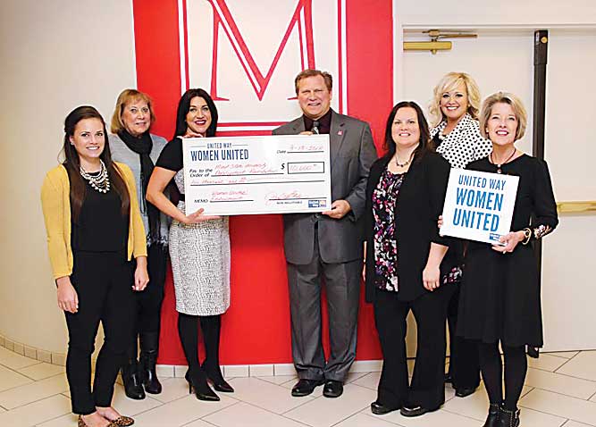 Submitted Photo Women United, an affinity group of Souris Valley United Way, has presented a generous gift to the Minot State University Development Foundation to establish the Women United Scholarship Endowment. The Endowment will pave the way for generations of MSU women, according to a press release. Women United believes in the power of women to create positive change. Pictured from left to right are Danielle Rued, Joan Mattson, Kelly Loos, Rick Hedberg of the MSU Development Foundation, Julie Haas, Missy Feist-Erickson, and Susan Ness.