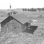 - A 1932 photo of the same cabin, surrounded by treeless prairie.