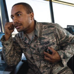 Submitted Photo Airman 1st Class Isaiah Harper-Parson, 5th Operations Support Squadron air traffic controller, coordinates with a flight line airman at Minot Air Force Base, Aug. 21, shown in this photo by Airman 1st Class Alyssa M. Akers. Communication plays a major role in ensuring aircraft are flying safely.