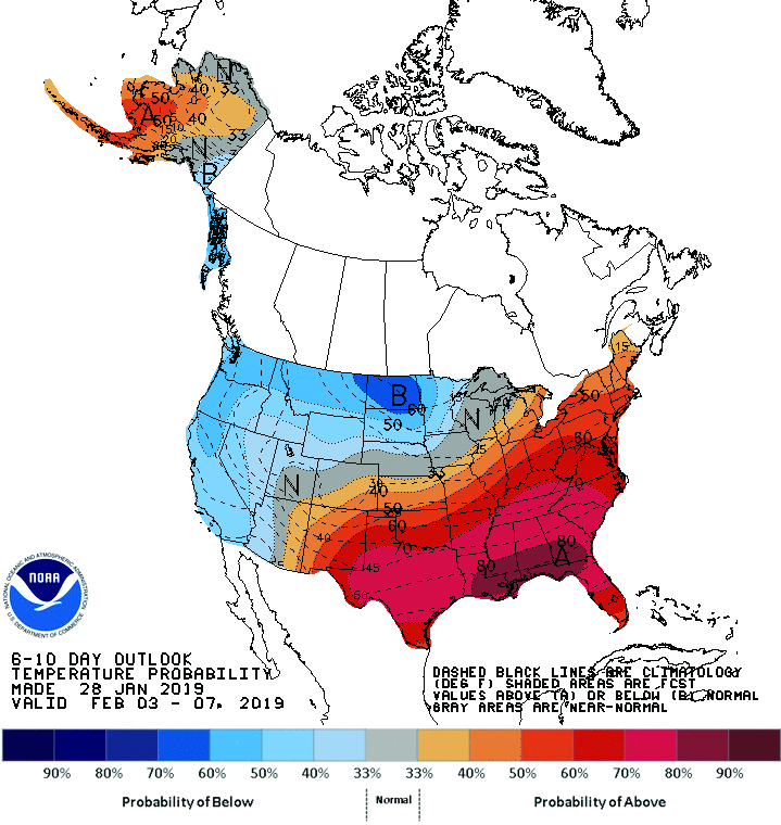 Submitted Photo This weather outlook issued by the Climate Prediction Center singles out North Dakota as the only state to have a very high probability of below normal temperatures though Feb. 7.