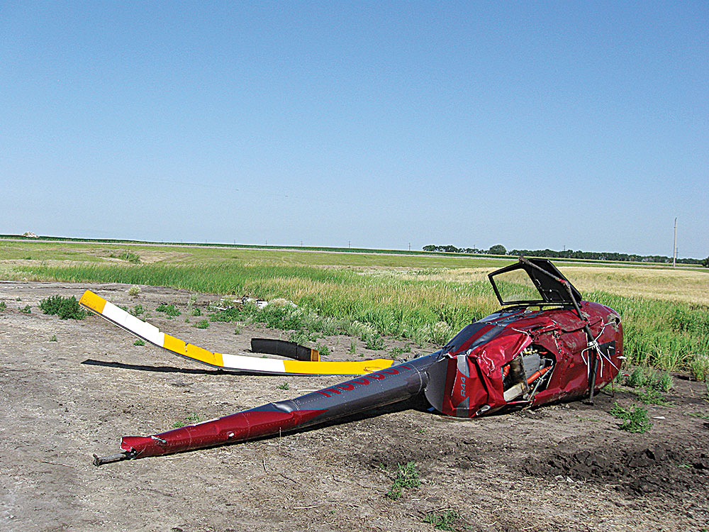 Submitted Photo A helicopter crashed near Fessenden on Wednseday, but its pilot survived with only minor injuries, according to the North Dakota Highway Patrol.
