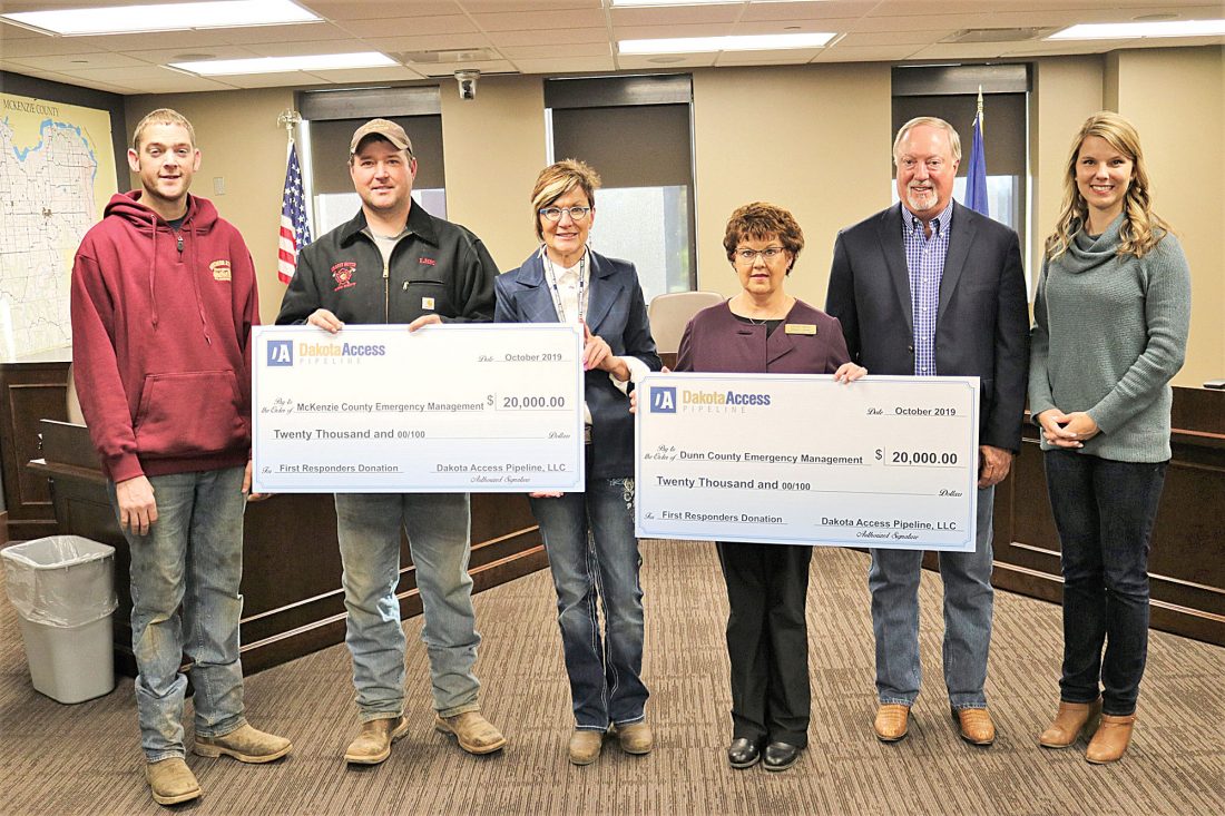 - Submitted Photo First responders from McKenzie County and Dunn County received $20,000 checks on Thursday from the Dakota Access Pipeline, LLC.