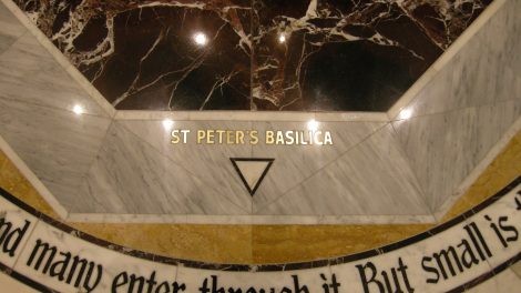 - Tiny pieces of the flooring from the four major papal basilicas in Rome are inset into the floor under the baptismal font at the newly renovated St. Leo the Great Catholic Church. This is a piece of the flooring from St. Peter’s Basilica.
