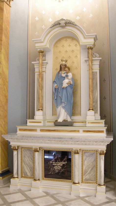 - A statue of the Virgin Mary stands in St. Leo the Great Catholic Church.