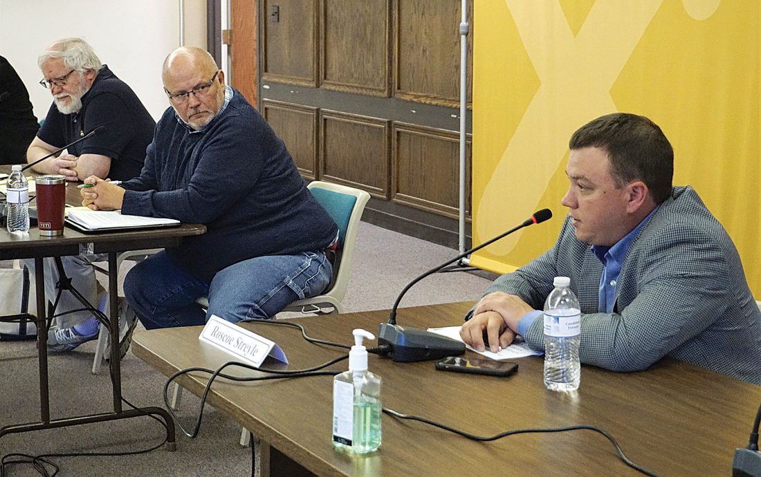 - Jill Schramm/MDN Roscoe Streyle answers a question at a city council candidate forum Thursday. At left are Stephan Podrygula, far left, and Tom Ross.