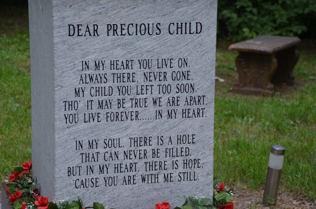 Matteson said those who have lost children are invited to write a letter to their child and place the letters and flowers at the memorial.