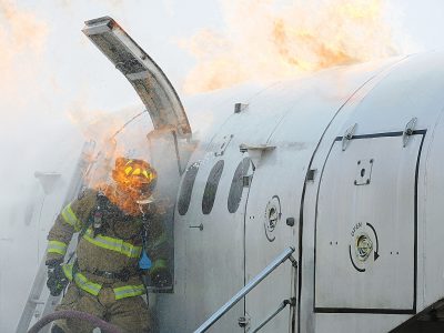 The live fire aircraft rescue simulator featured realism, from fire on the ground such as from spilled fuel, to a smoke-filled fuselage where the visibility was zero. There was even the sounds of people screaming for help and crying out in pain.
