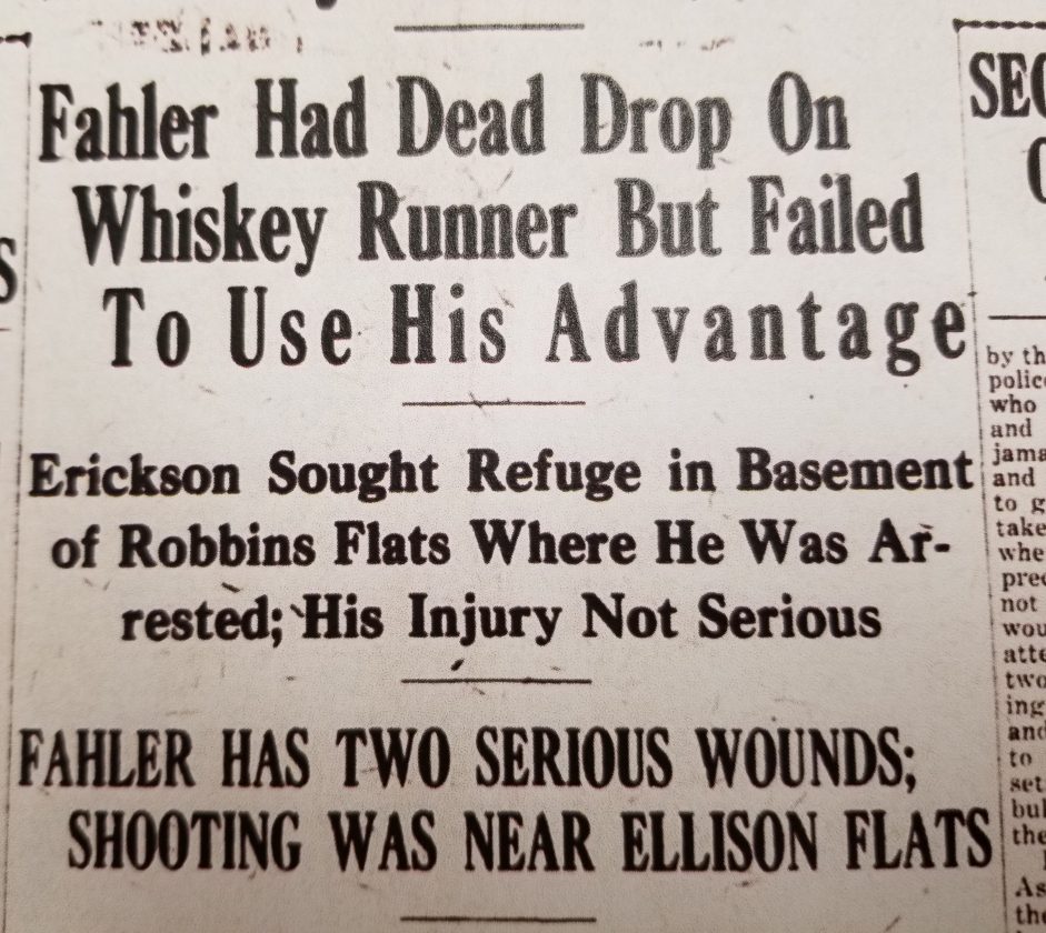 Erickson was said to have been talking freely while in the hospital, admitting to the automobile theft and running of whiskey. And, despite an attempt to bribe Fahler, said he thought the policeman was a “high jacker” trying to steal his car and load.