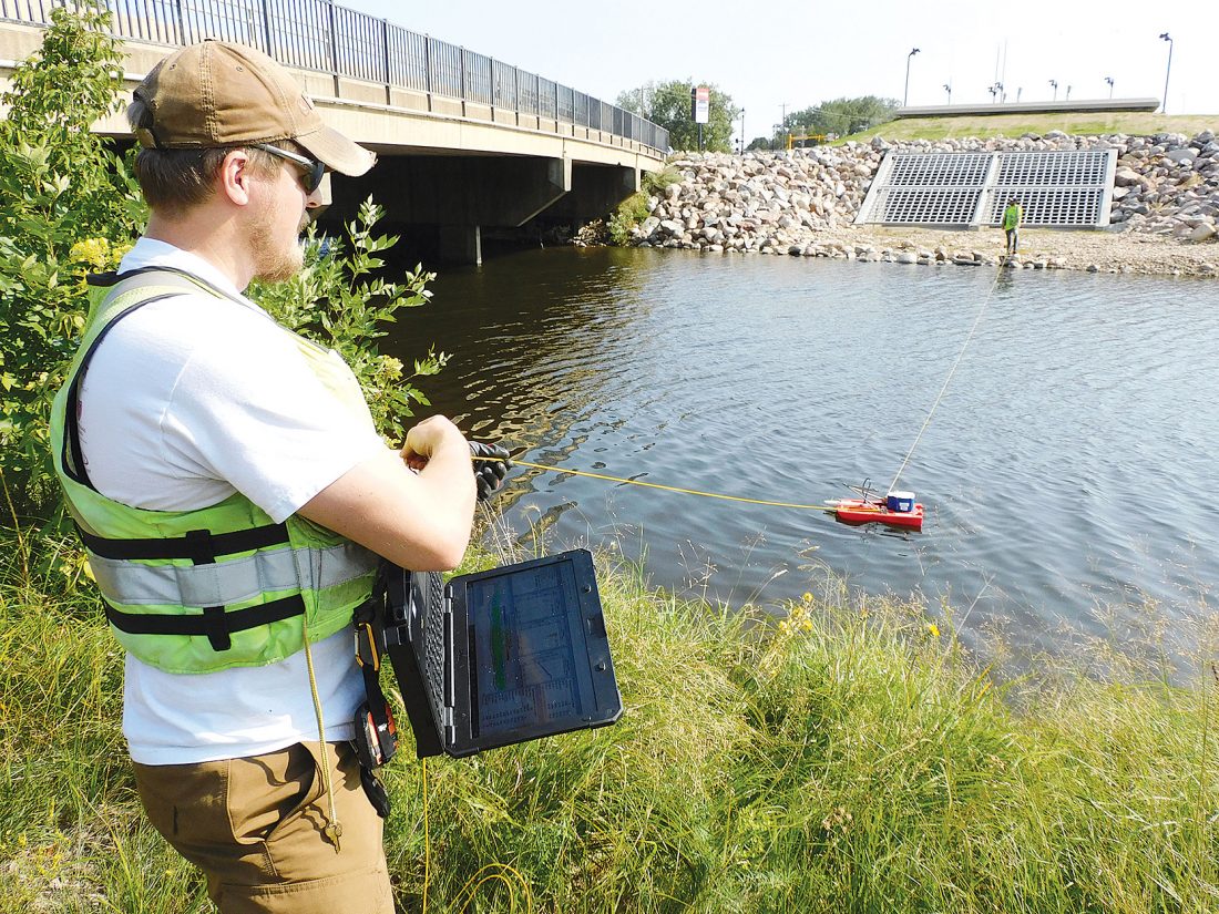 The U.S. Fish and Wildlife Service, U. S. Army Corps of Engineers, North Dakota Department of Water Resources, and U.S. Geological Survey hope to find the answer. Teams of USGS personnel ascended on the Souris River from Baker’s Bridge to Verendrye this week, including measurements taken at the Boy Scout Bridge west of Minot, just above the Broadway Bridge, and near Muus Lumber on the city’s east edge.
