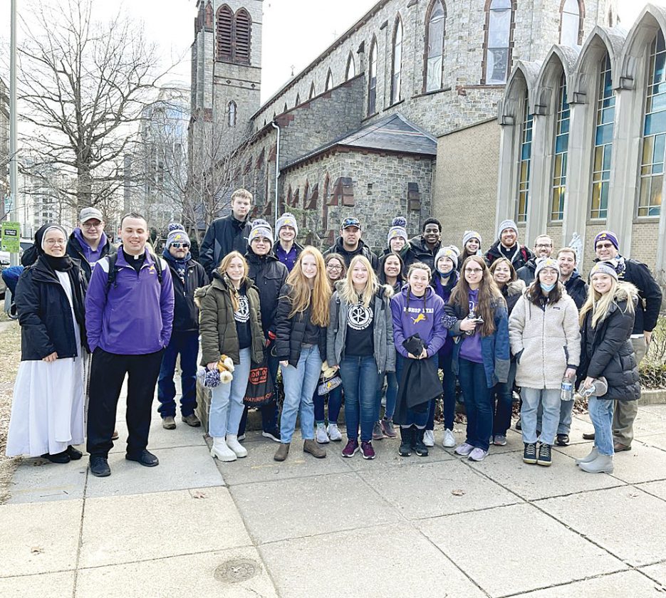 Submitted Photo Bishop Ryan High School students attended the March for Life in Washington D.C. last week, joining thousands from across the country for the 49th annual pro-life march. March coordinator Brian Rodgers, a teacher at the school, said the 24 sophomores through seniors took a 30-hour bus ride to reach the capitol. The annual event also included educational activities. Rodgers said the students also had an opportunity to view the changing of the guard at Arlington National Cemetery and travel to the site of the Battle of Gettysburg as well as attending Mass at different shrines and basilicas. They returned home on Sunday. Pictured are the group of students before Mass on the way towards the March’s starting point. — Andrea Johnson