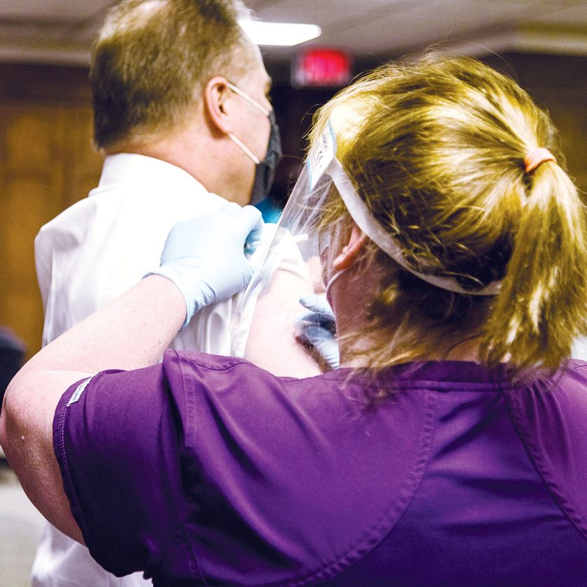 Submitted Photo A nurse at Trinity Health prepares a patient for a vaccine. Trinity officials stressed the importance of vaccinations in the prevention of severe symptoms from COVID-19.