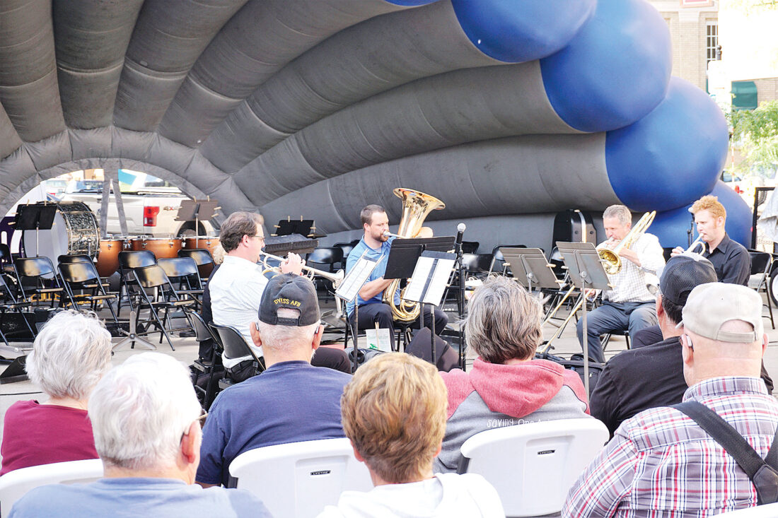 Jill Schramm/MDN A brass quintet performs on Main Street as part of the Minot Council of the Arts activity held during the Thursday Downtown event. The council is among community organizations that receive city tax dollars.