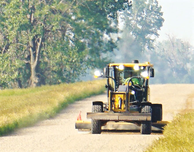 Jill Schramm/MDN A Ward County equipment operator motors down a county road this summer. Road maintenance accounts for a piece of the county tax obligation.