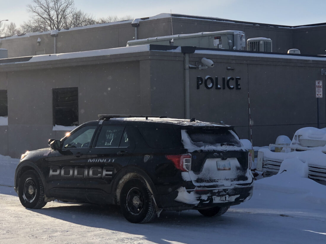 Charles Crane/MDN A city police vehicle sits outside the Minot Police Department on Thursday afternoon.