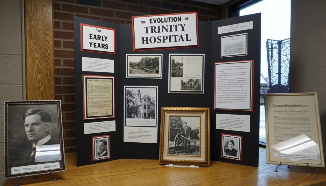 A committee with First Lutheran recently gleaned from the church’s historical records to develop a display commemorating the linkage between the church and the hospital.