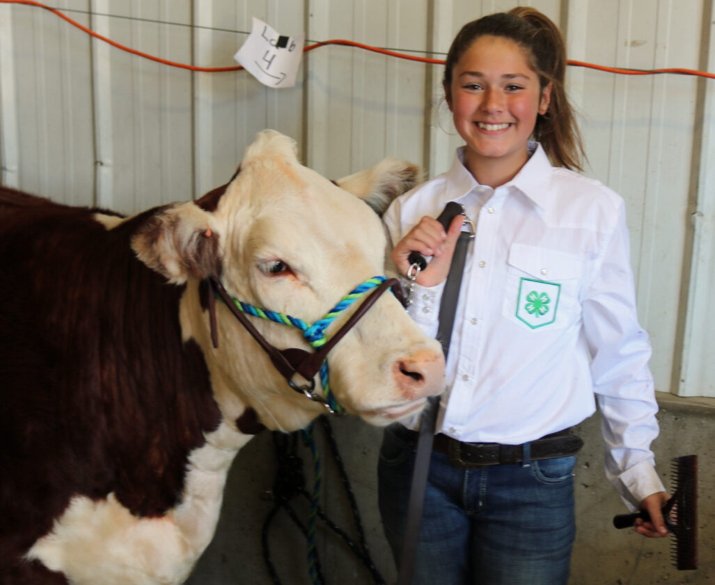 - Amy Wanus poses with her cow and showcases her animal handling skills at the last Achievement Day.