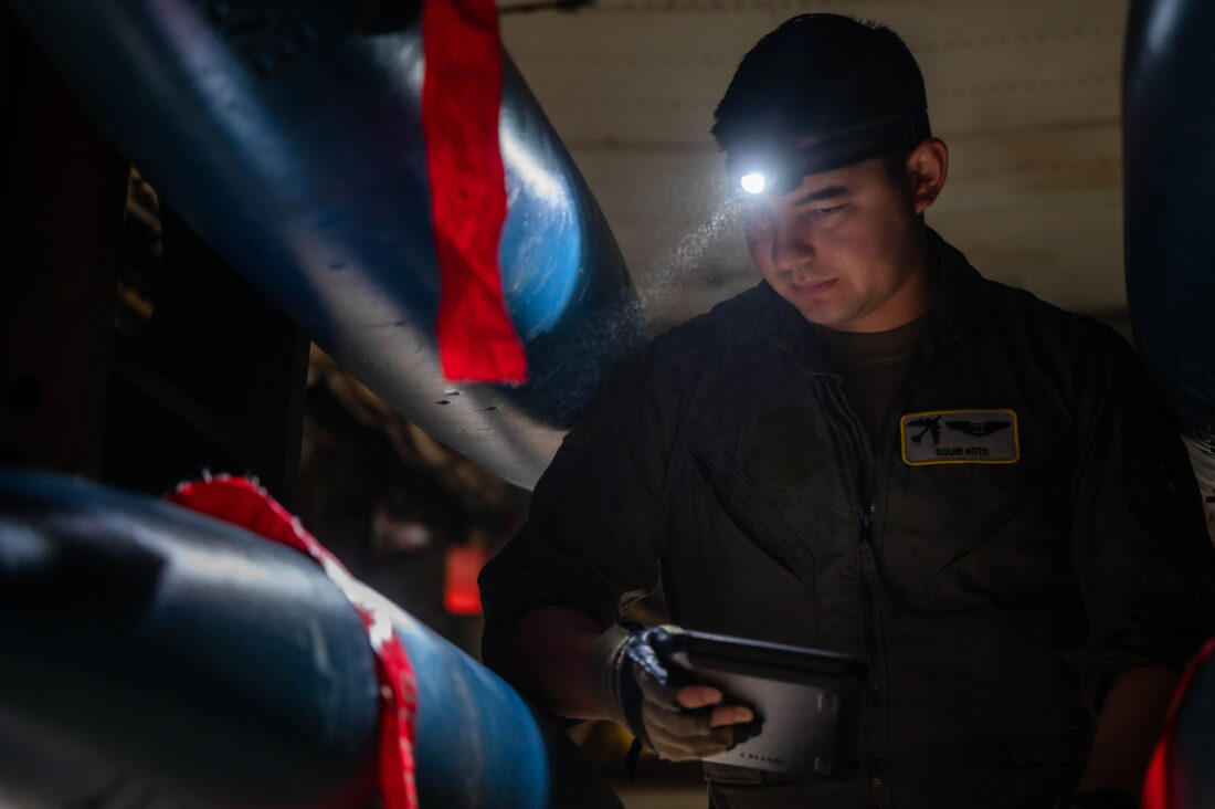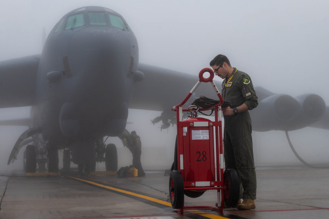 - Capt. Nicholas Donato, 69th Bomb Squadron pilot, checks on the preflight binder before the day’s mission at Minot Air Force Base on Aug. 24, in this Air Force photo by Airman 1st Class Alexander Nottingham. Aircrew members are experts in theory of flight, air navigation, meteorology, flying directives, aircraft operating procedures and mission tactics.