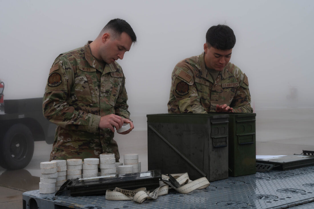 - Senior Airman Chase Melies and Airman 1st Class Trevor Sexton, 5th Munition squadron members, load munition starter cartridges at Minot Air Force Base on Aug. 24 in this Air Force photo by Airman 1st Class Alexander Nottingham. It’s the responsibility of 5th MUNS to assemble and process nonnuclear munitions.