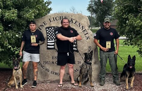 PARSHALL – Three Mandan, Hidatsa, Arikara Nation Division of Drug Enforcement’s K9 handlers and their dogs brought home top awards in the 24th Annual American Working Dogs K9 Olympics held Aug. 20-25 at Vohne Liche Kennels in Denver, Indiana.