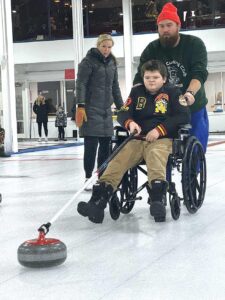 One such player was Brayden Booth. He took part in the first event and enjoyed it so much that he decided to go back. With a Minot Curling Club member pushing his wheelchair, Booth sent the curling stone down the lane, where it was stopped by another club member.