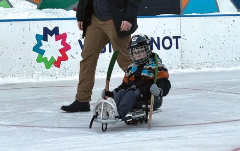 Emmit Vickerman quickly figured out how to best get around on the ice and joined the other kids in shooting goals on either end of the rink.